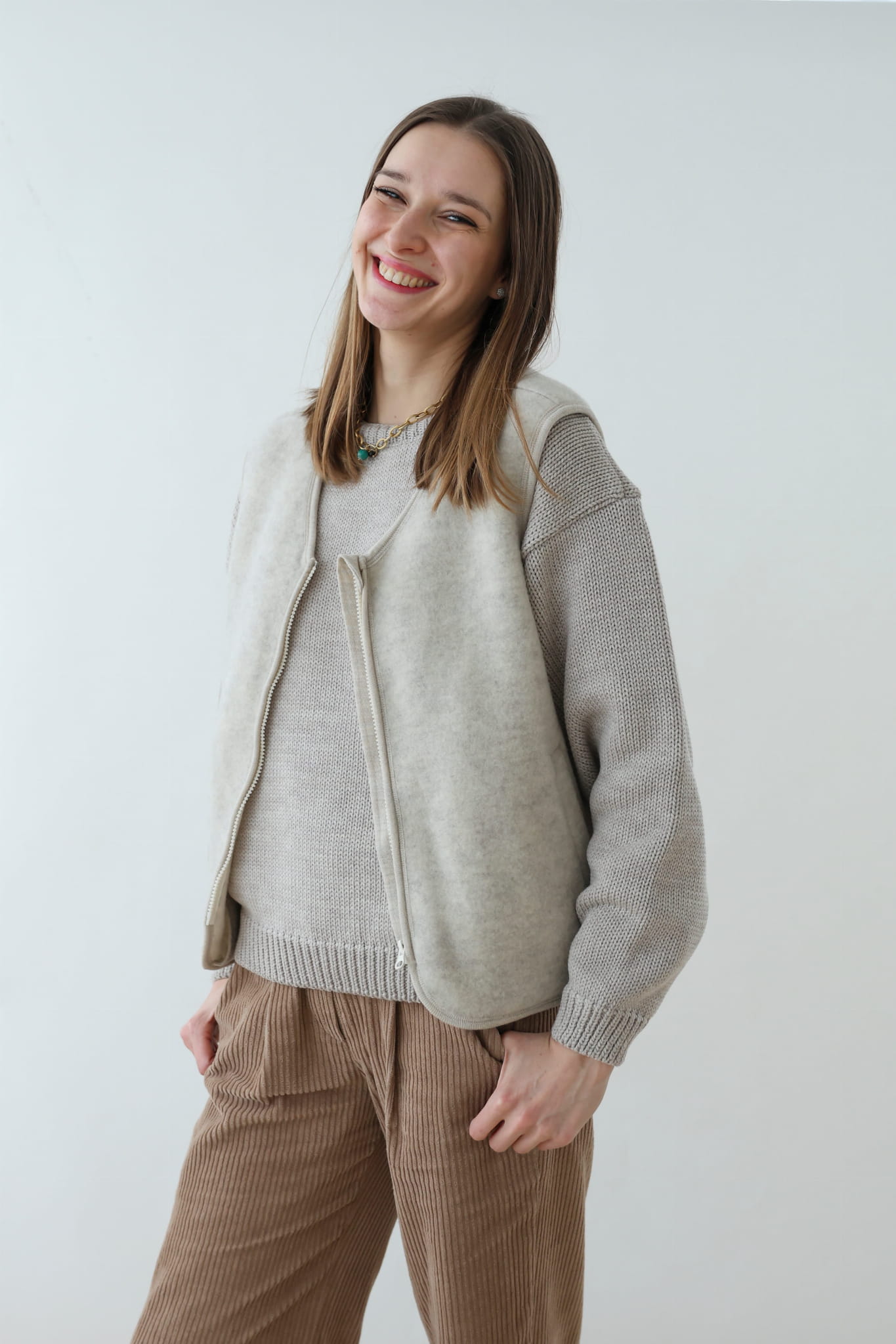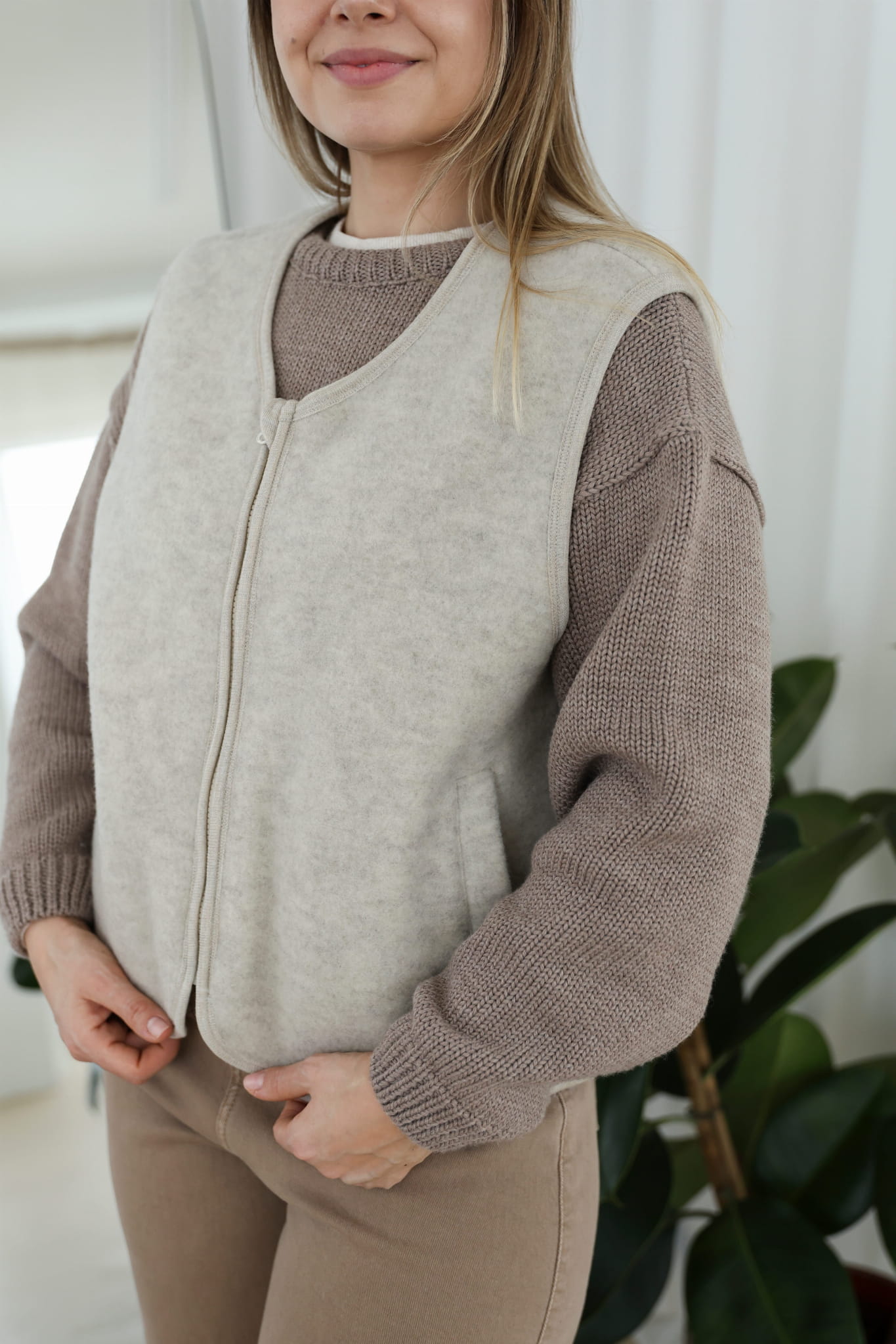 Kamizelka damska merino polar ivory